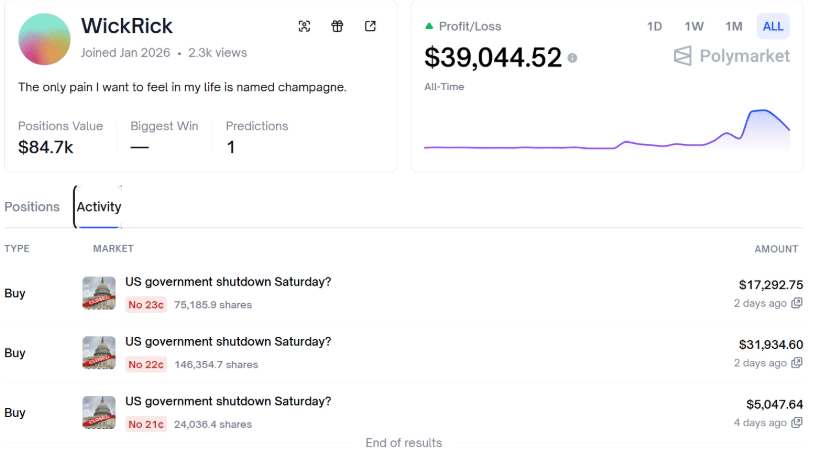 Yesterday, late night reports that President Trump and Senate Minority Leader Chuck Schumer were progressing towards a deal led to a nearly 20% swing on Kalshi and Polymarket. Odds moved to close to 50-50 before adjusting this morning.