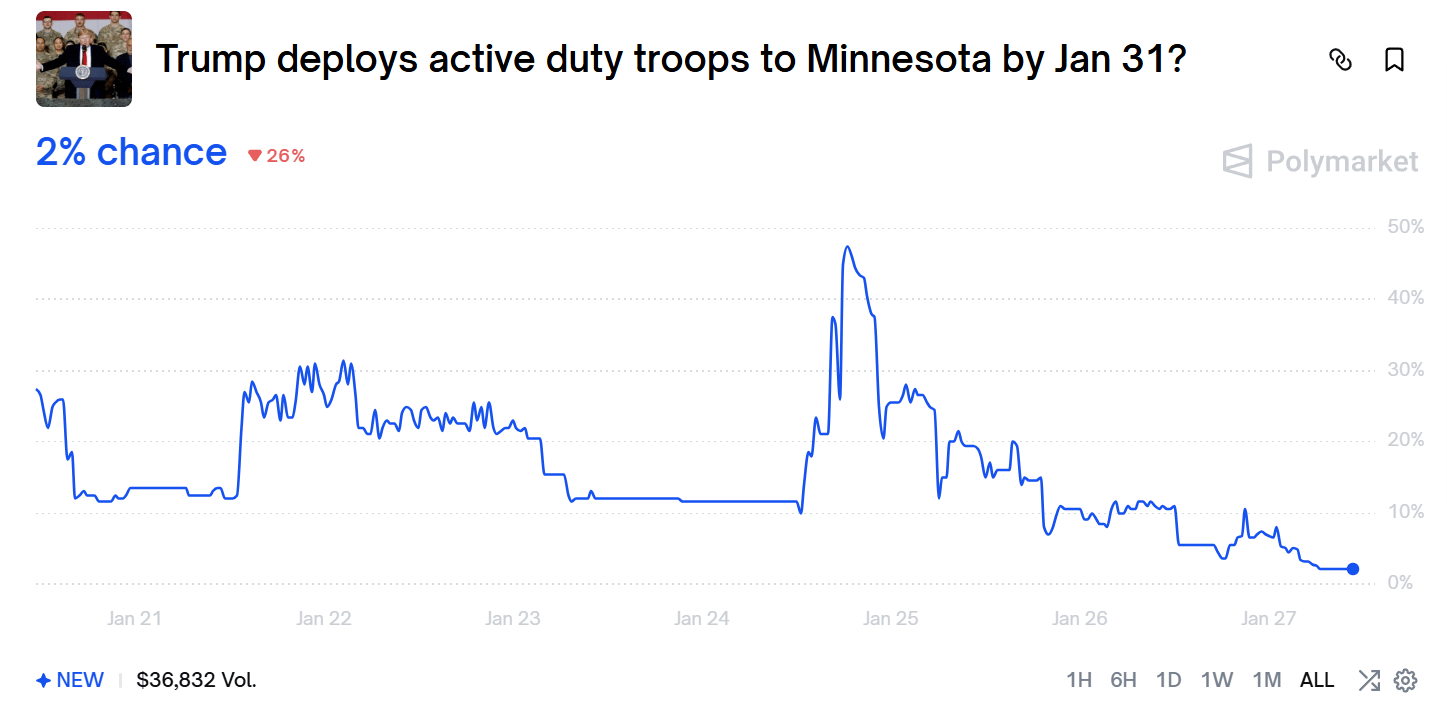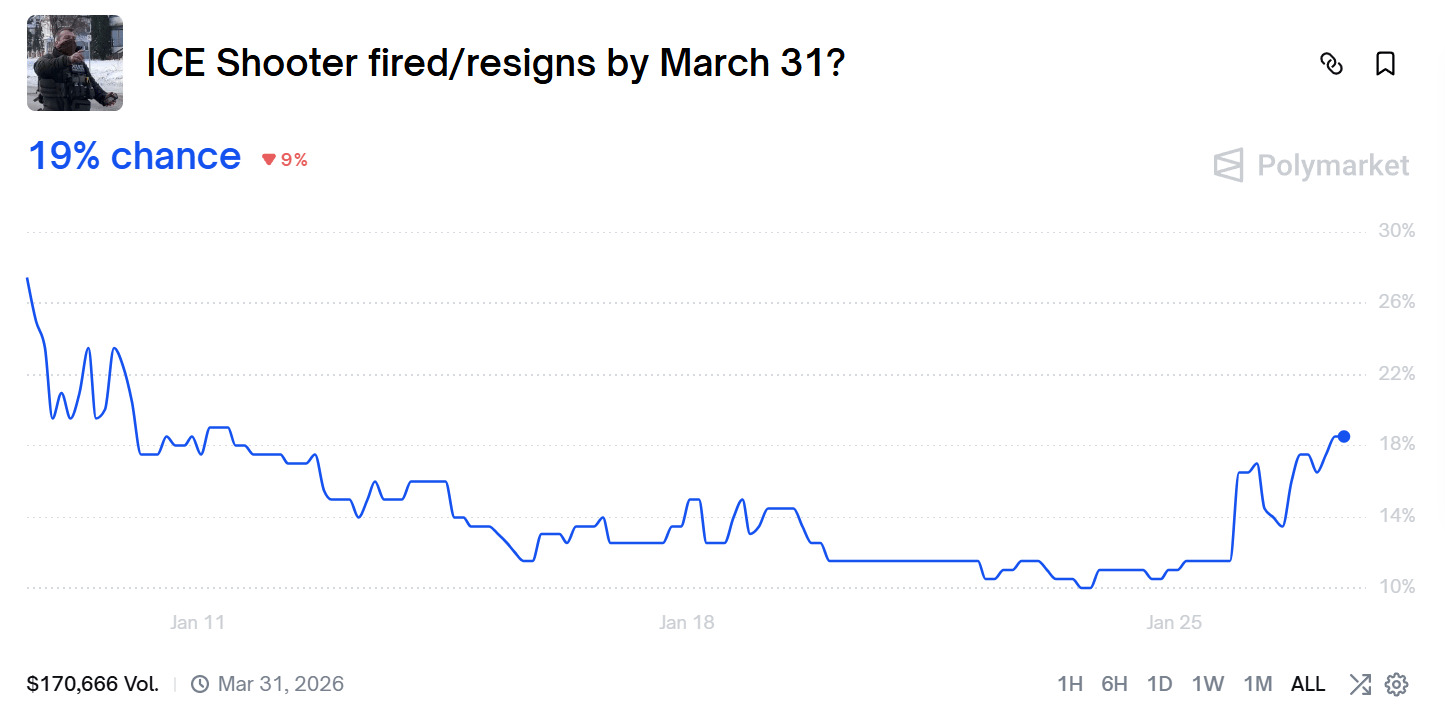 But -- at the risk of alienating some portion of Oddchain readership in order to make what I hope will be an insightful observation about prediction markets -- I will say this: I believe, beyond any reasonable doubt, that Pretti was murdered without cause by the state. I believe that the Hague would be too good for the people involved. I believe any civil society would immediately disband ICE and prosecute everyone involved with its formation, operation, and administration, going back multiple presidencies.