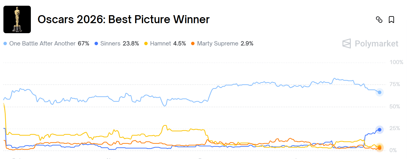 On Sunday, as thousands of Minnesotans protested ICE occupation throughout the state, some friends and I were idly debating early Oscar predictions. One friend, in possession of extremely good taste and generally sharp logical faculties, insisted that Sinners was a strong underdog choice on the market, currently sitting around 25% odds. She believed, and argued with great conviction for myriad reasons, that it was a superior film when compared to the frontrunner, One Battle After Another.