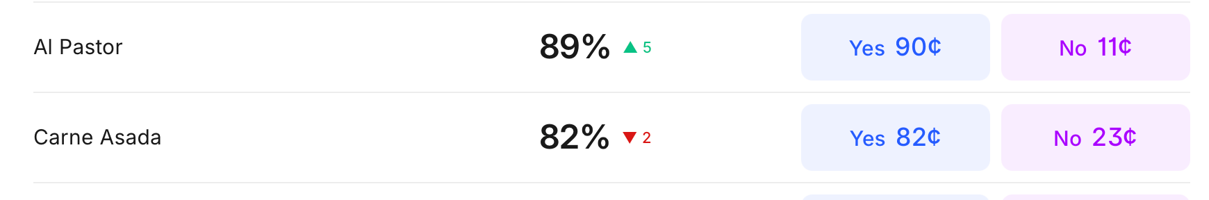 We think Al Pastor and Carne Asada are solid maybes, and the pricing reflects that.