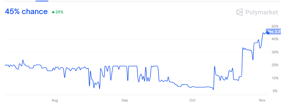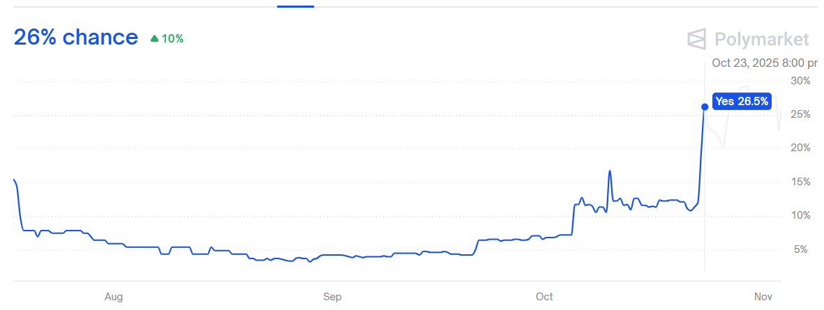 Amid this chatter, his odds rose yet again, climbing 25% notionally to 26.5% overall.